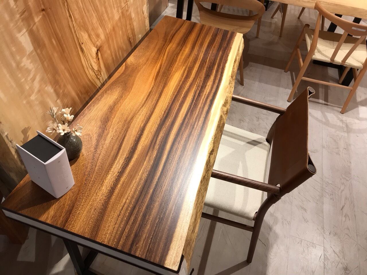 モンキーポッドは、南アフリカ原産の木材で、軽くて硬度が高く、樹脂成分を含むため耐久性も優れています。一枚板は、そのままの木肌と造りが魅力で、木の力強さや美しさを味わうことができます。