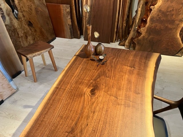 ウォールナットの一枚板は、厳重な乾燥管理が必要ですが、その後の狂いは非常に少なく、高級木材として世界中で愛されています。