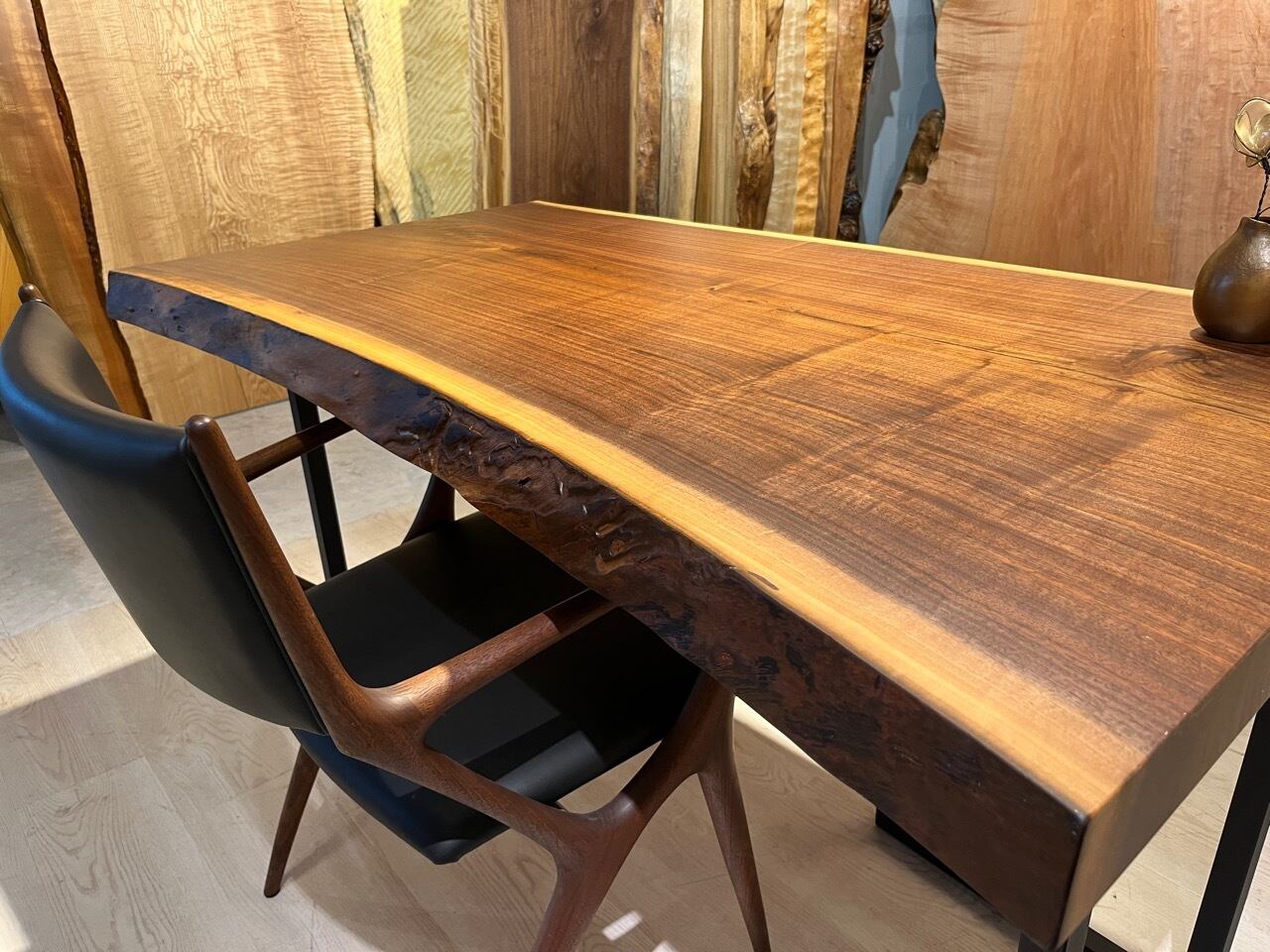 ウォールナットの一枚板は、厳重な乾燥管理が必要ですが、その後の狂いは非常に少なく、高級木材として世界中で愛されています。