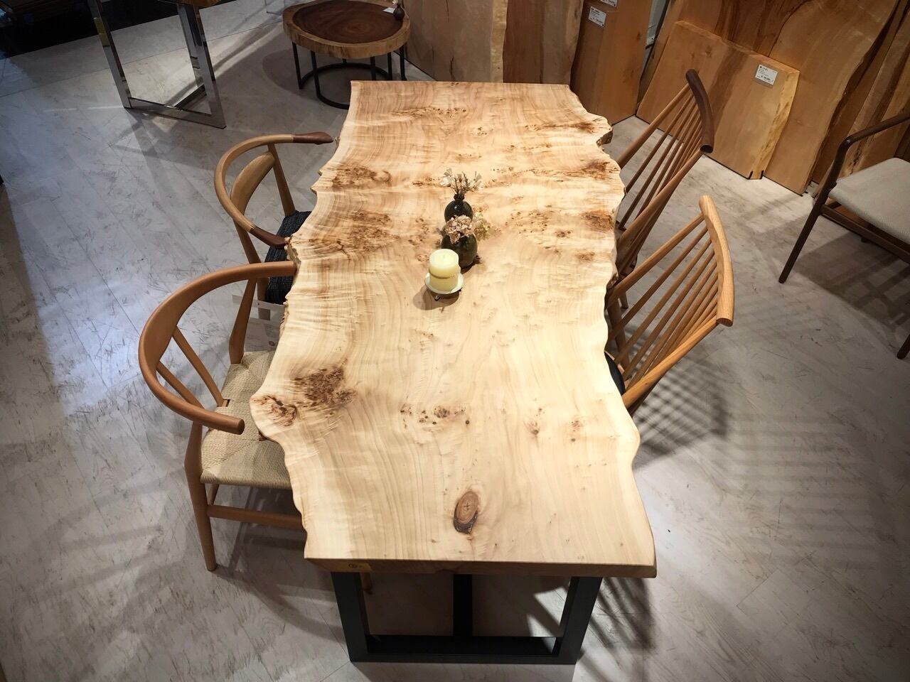 一枚板の実際の大きさ、形をお試し頂けます。