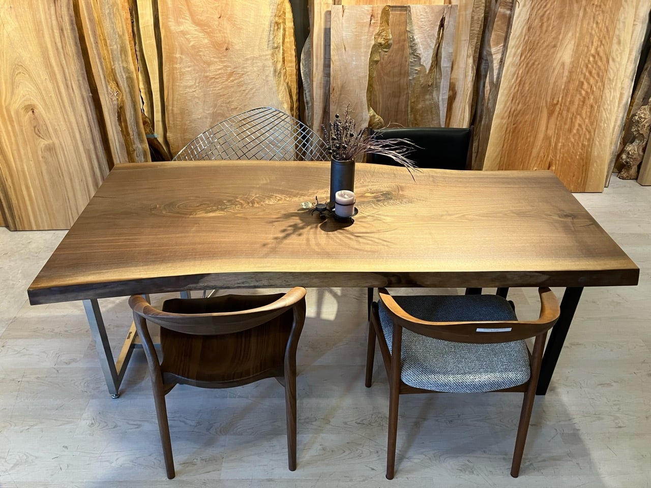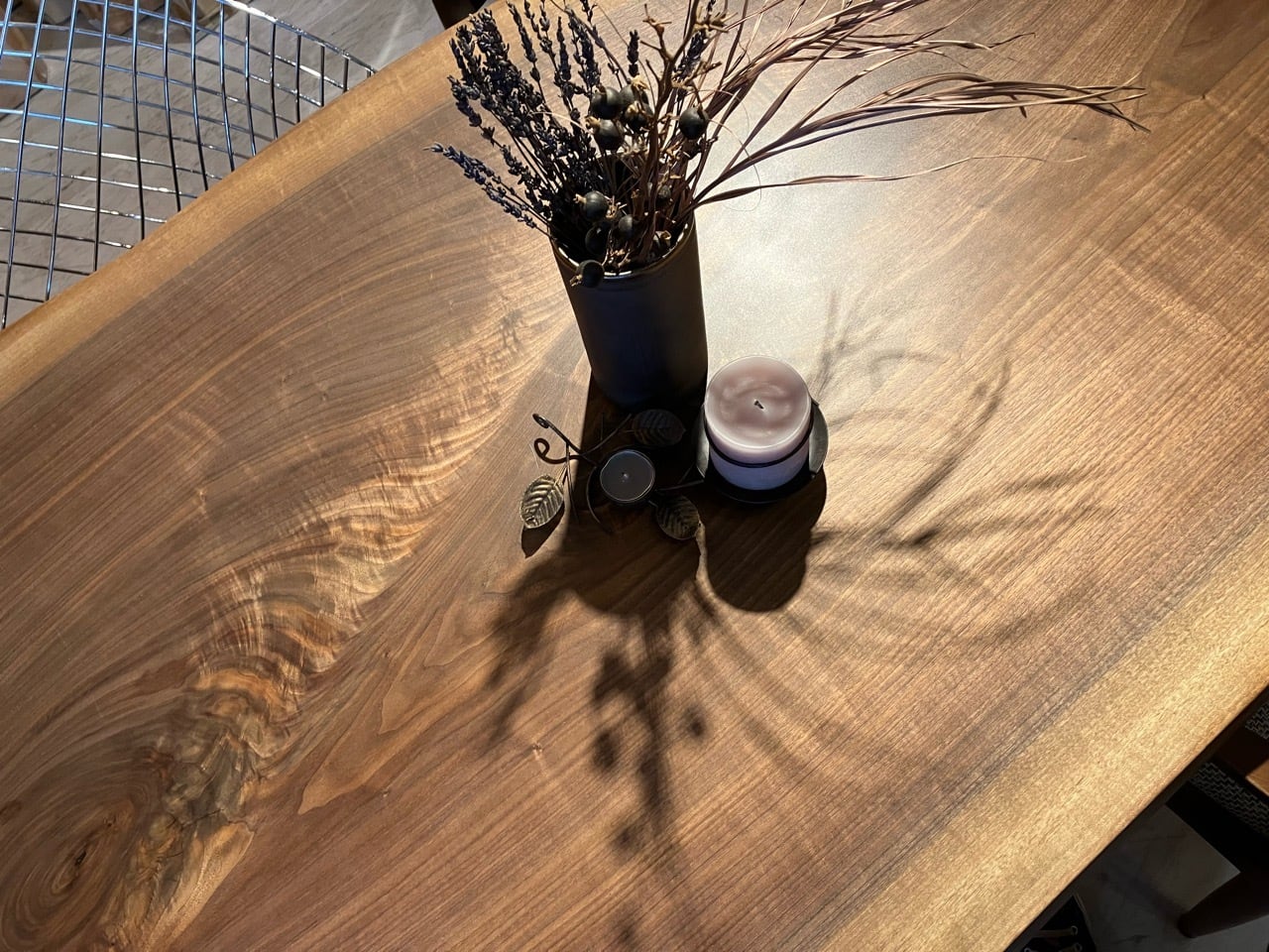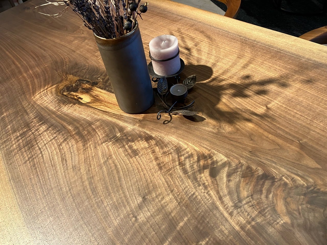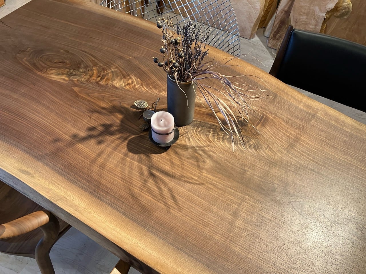ウォールナットの一枚板は、厳重な乾燥管理が必要ですが、その後の狂いは非常に少なく、高級木材として世界中で愛されています。