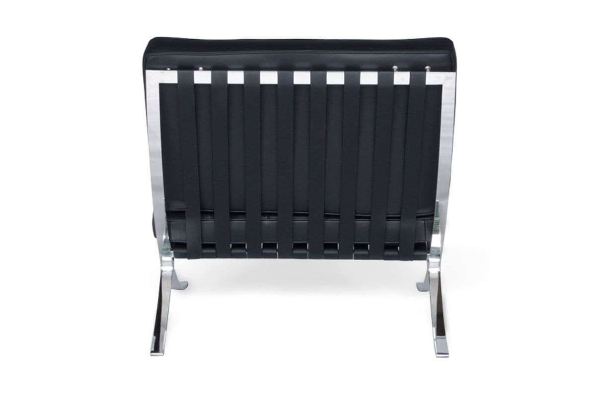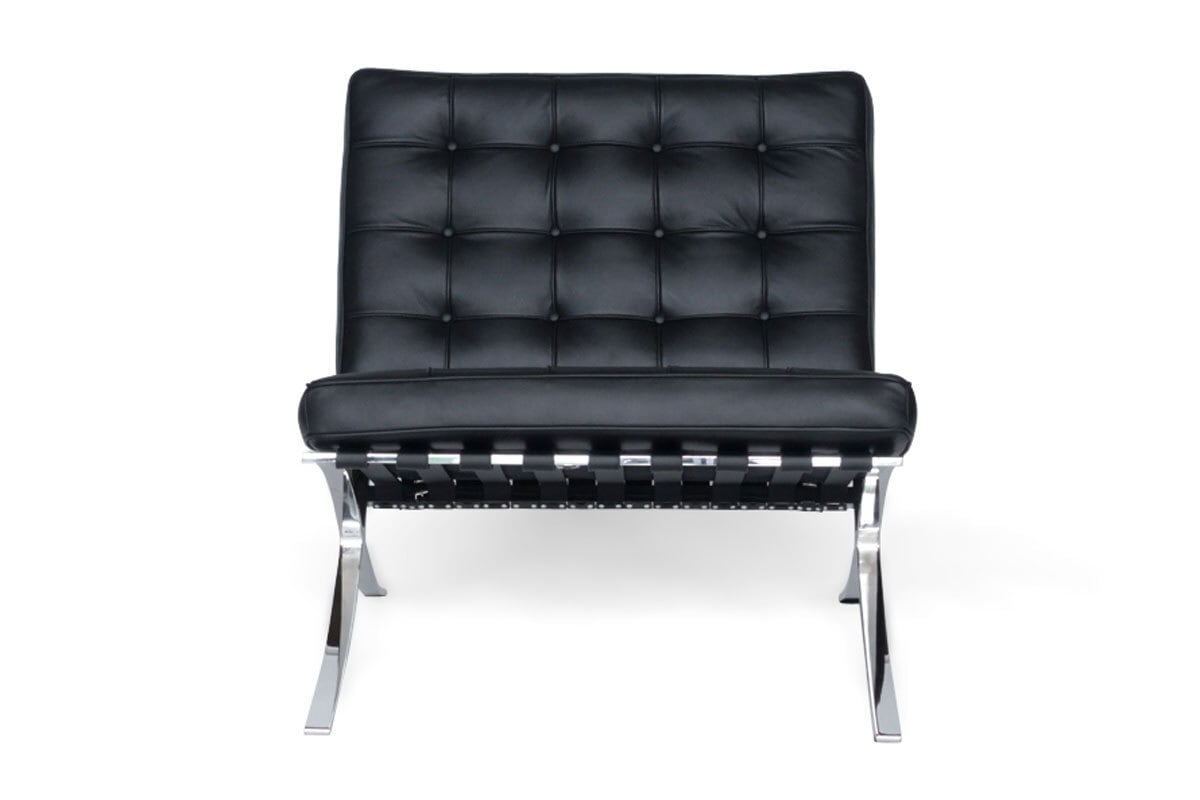 バルセロナ チェアは、バルセロナ オットマンと共に1929年のバルセロナ万博に際しデザインされた。スペイン国王夫妻を迎えるため、ドイツパビリオンの設計を依頼され建物・インテリア家具ともにデザインされたのです。その後1990年代から、様々な国で売れ続けており、ミースの建築の功績よりも有名になってしまったのではと思えるほどです。 バルセロナ チェア&オットマンのデザインの革新性は、当時のデザイナーが主に使っていた鋼管の代わりに、スチールバー(板状の鉄)を使用し溶接して仕上げ、鋼管家具の丸いパイプに比べて無駄のないすっきりとした美しさと、脚のクロスされたディテールにあります。バルセロナ チェア&オットマンのオリジナルは、スチールでしたが、無垢のステンレススチールで製作し、ポリッシュ仕上げを行っています。 すっきりとした薄めのクッションを持つクラシカルタイプのバルセロナ チェアです。