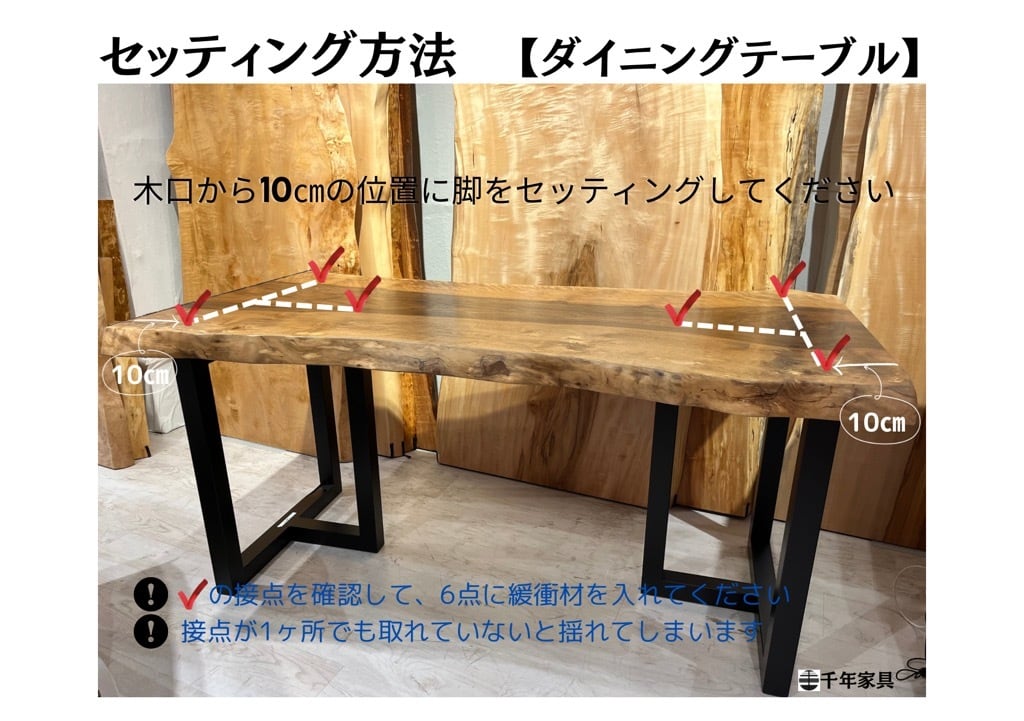 固定の場合、板の裏面に金具を取り付ける為、一枚板は片面使用になります。