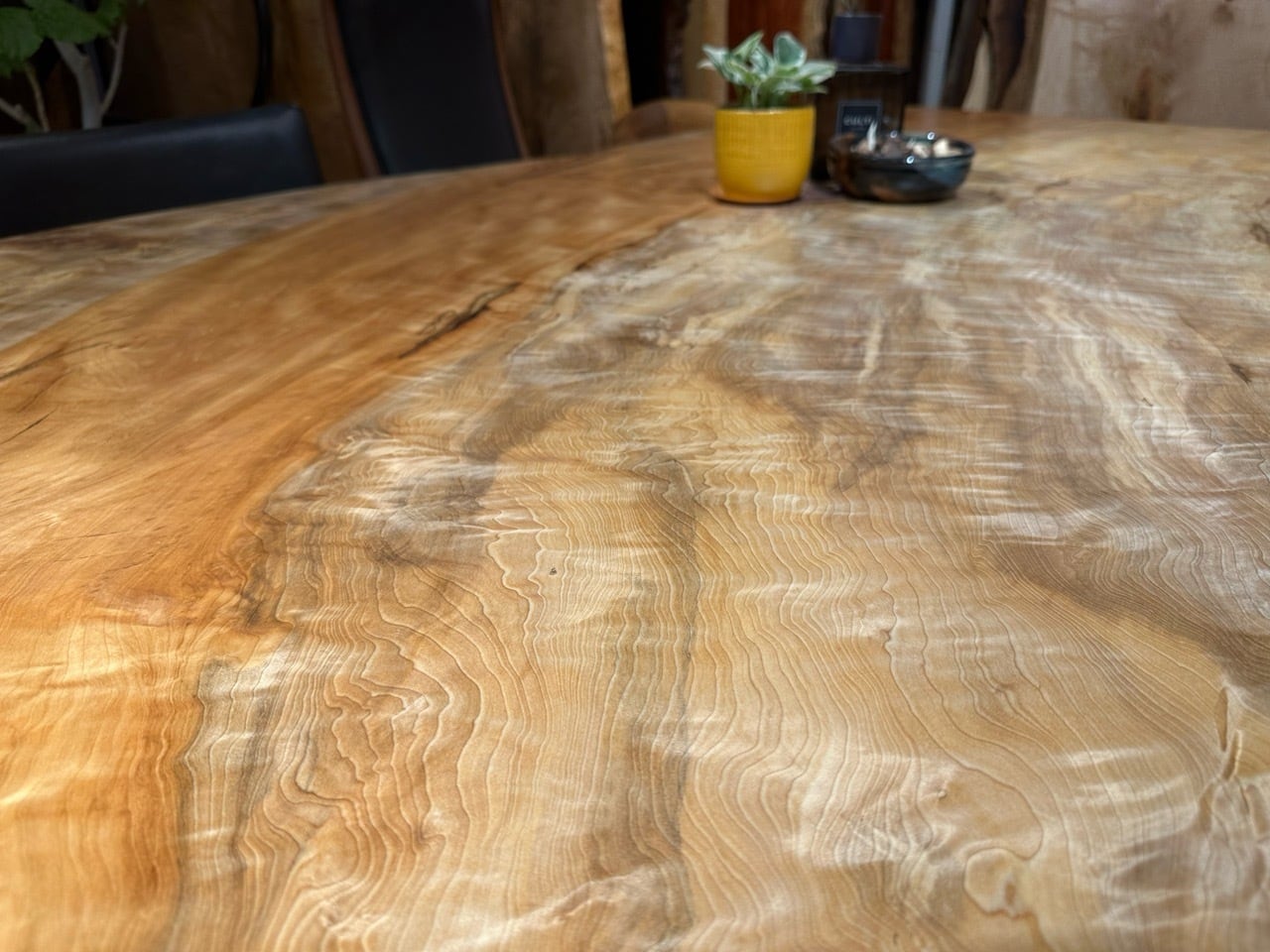 昼光の入射角の変化に伴い杢のトチは豊かに有機的な表情を見せてくれます。